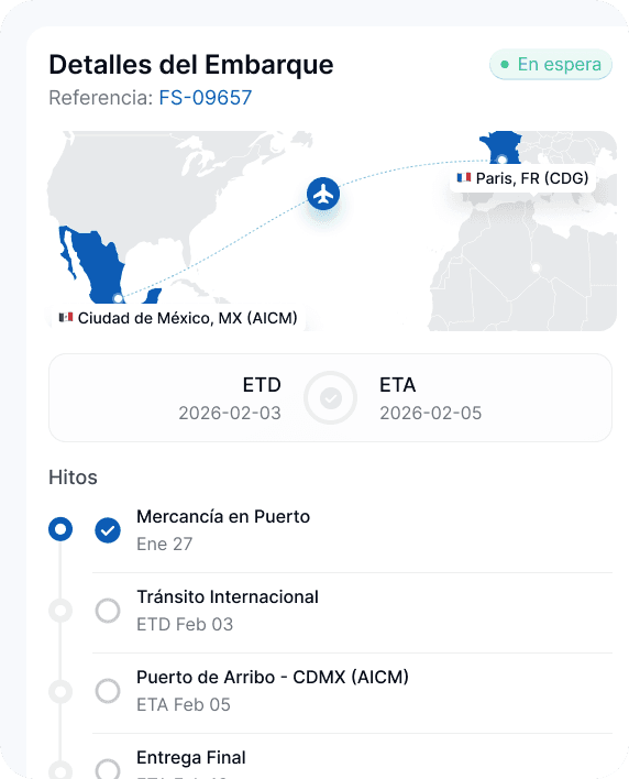 Gestiona embarques urgentes con visibilidad detallada a nivel SKU y toma decisiones rápidas con información confiable. Centraliza la documentación y la comunicación aduanal en una sola plataforma para reducir errores, demoras y costos operativos.